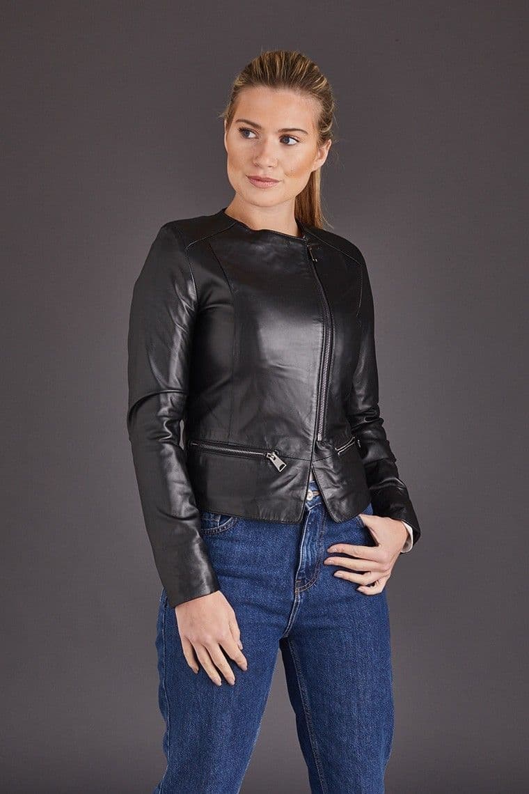 Soft lamb leather biker jacket in black