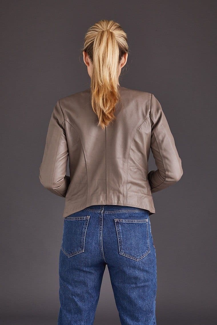Soft lamb leather biker jacket in beige
