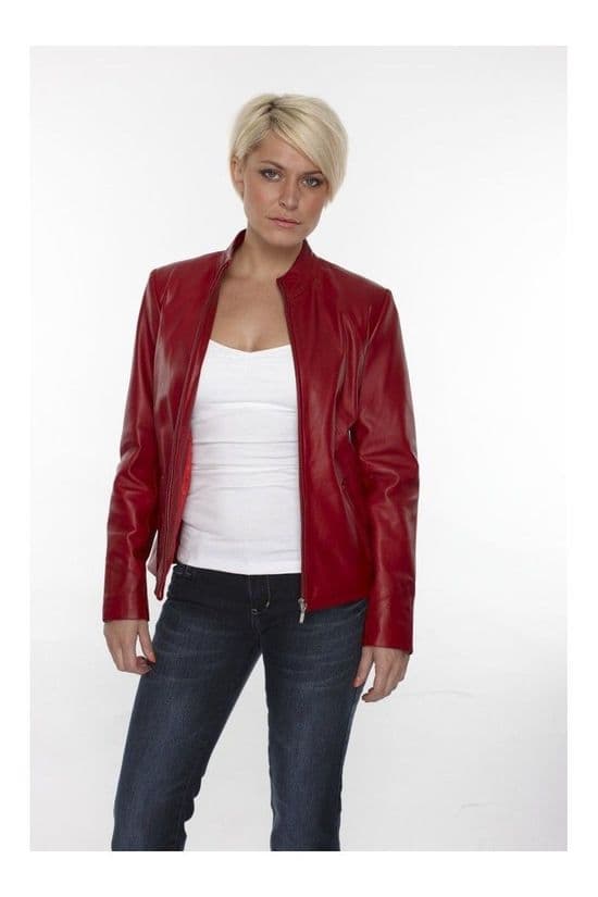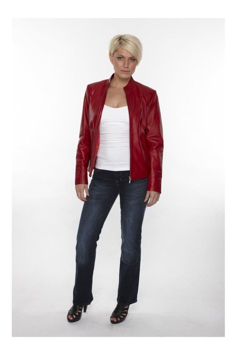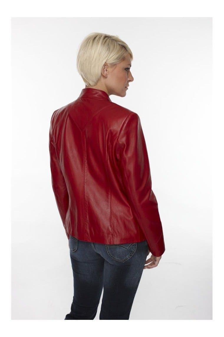 Women Leather Biker Jacket in Red:EB
